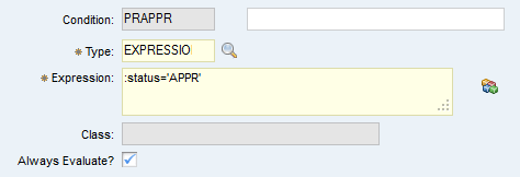 - Property values when condition PRAPPR is true: Property=display – Value=false