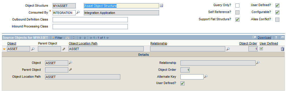 Create an Integration Object Structure MYASSET and add the ASSET object as source.