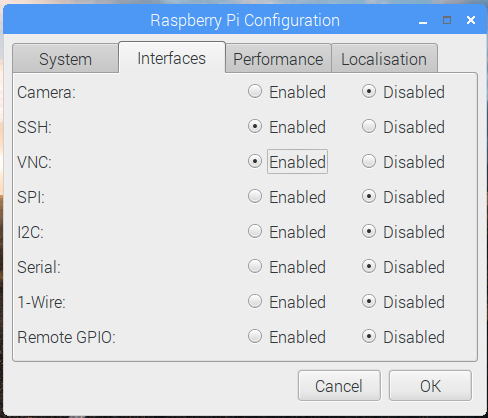 In the Interfaces tab you can also automatically start the VNC server at boot.