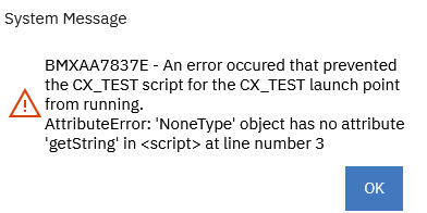 In some cases you may need to explicitly catch Java exceptions. In the example below (if there is at least one work order) the line in bold will raise a Java exception, because the “xxxxWONUM” attribute does not exists, and so the “Java exception” message will be displayed.